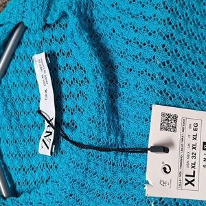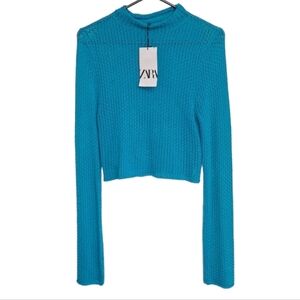 ZARA BLOGGERS FAV HIGH COLLAR POINTELLE KNIT SWEATER TOP NWT SIZE XL