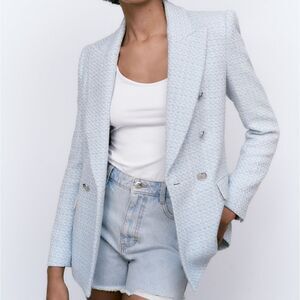 ZARA BLOGGERS FAV NEW DOUBLE BREASTED TEXTURED tweed blazer SKY BLUE 755…