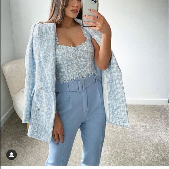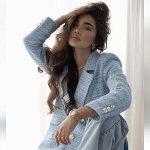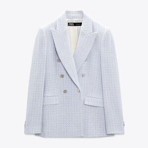 ZARA BLOGGERS FAV NEW DOUBLE BREASTED TEXTURED tweed blazer SKY BLUE 755…