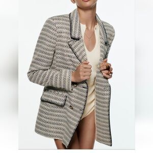 ZARA BLOGGERS FAV TEXTURED SAND AND BLUE BLAZER NWT chanelish style