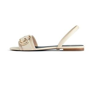 ZARA BLUE COLLECTION 100% LEATHER IVORY GOLD TONE BUCKLE SLIDES SANDALS