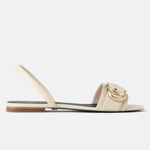 ZARA BLUE COLLECTION LEATHER IVORY FLAT SLIDE SANDALS
