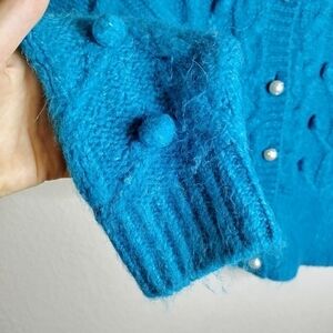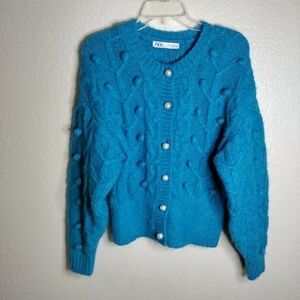 ZARA BLUE PEARL CRYSTAL BUTTON KNIT CARDIGAN sz M