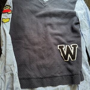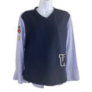 ZARA BLUE VARSITY LETTERMAN PATCHES STRIPED TOP SWEATER VEST BLOUSE 486/242 S