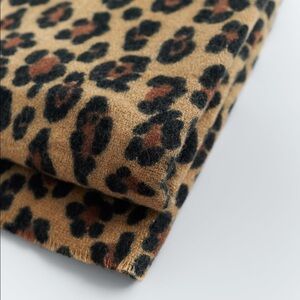 Printed scarf. Frayed trim. Dimensions: 31.5 x 74.8"