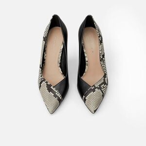 ZARA BNWT Asymmetric Heel Leather Animal Print Wedges