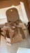 Taupe Backpack. Faux fur exterior. Two front pockets with zip closure. Adjustable shoulder straps. Lined interior with pocket. Drawstring and magnetic closure.