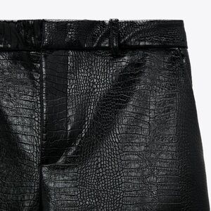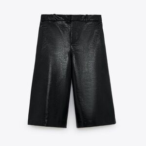 High waisted long shorts with front pockets. Belt loop at waistband. Front zip, metal hook, and inside button closure. 83% polyester 2% viscose 15% cotton