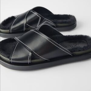 ZARA BNWT Flat Faux Fur Sandals