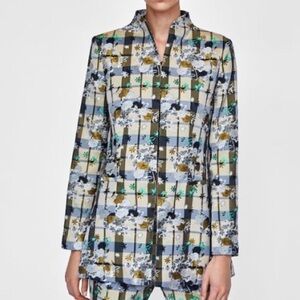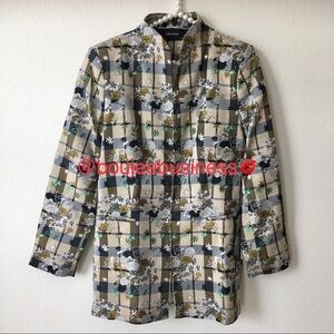 High Collar, long sleeves, welt front pockets. Fastens in front w/hooks