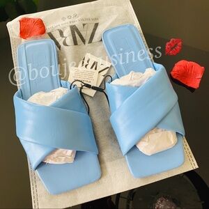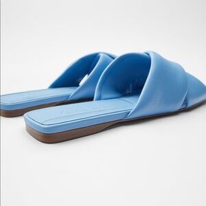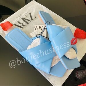 ZARA BNWT Padded Quilted Leather Flat Squared Toe Sandals