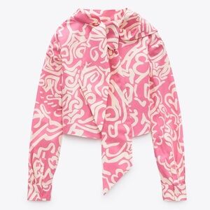 Crop top with high collar and long sleeves with cuffs. Asymmetric hem. Back closure with opening and self-tie. 100% cotton