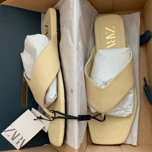 ZARA - BNWT Wide Strap Leather Flat Slide Sandals Size US 9