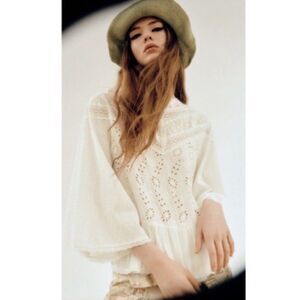 ZARA BOHO EMBROIDERED EYELET BLOUSE