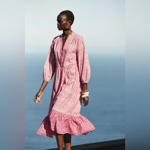 ZARA BOHO PRINTED MIDI RUFFLED DRESS