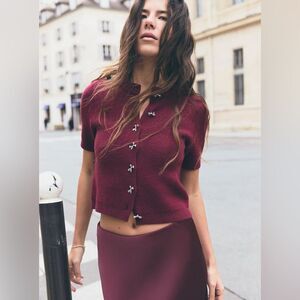 ZARA BOW SHAPED BUTTON KNIT CARDIGAN