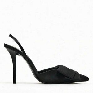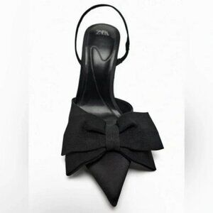 Heeled sling backs with bow detail at front. Back strap with elastic. Pointed toes.