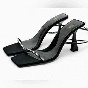 ZARA BRAND BLACK HEELED SANDALS WITH RHINESTONE STRAPS size35 size 5US