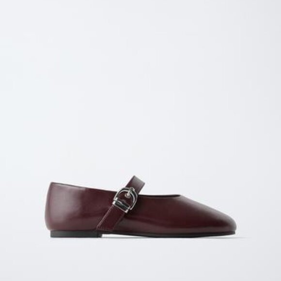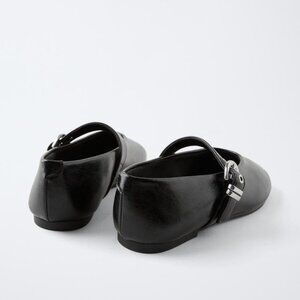 Flat shoes. Elastic side buckle closure. Flexible insoles. Rubber soles.