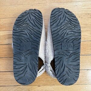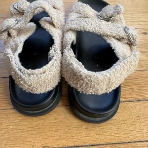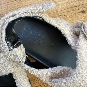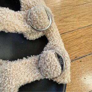 ZARA BUCKLED FLAT SANDALS WITH FUR-LINED STRAPS BEIGE