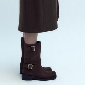 ZARA BUCKLED SUEDE ANKLE BOOTS