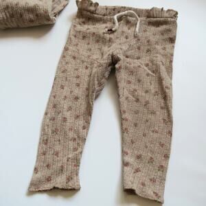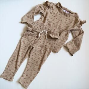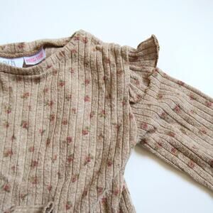 ZARA Baby Cozy Ribbed Set Long Sleeve Neutral Floral Print Size 9-12 Months