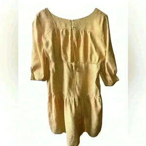 ZARA Baby Doll Dress Mustard color Boho Sz S Square Neck Half Sleeves Cottage