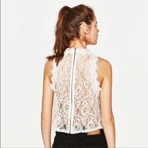 ZARA Back Zip Brocade Lace Crop Top Size S In Ivory NWT.