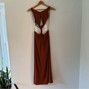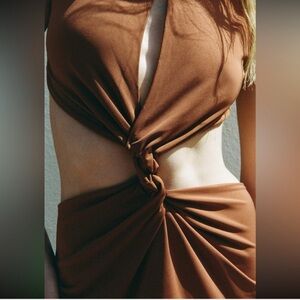 ZARA Backless Twist Cutout Brown Midi Dress
