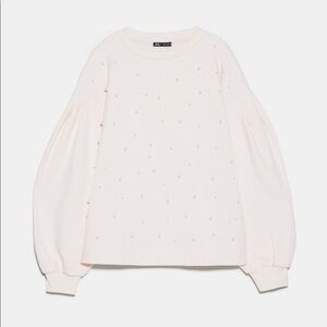 ZARA Balloon Sleeve Sweater with Faux Pearls BNWT