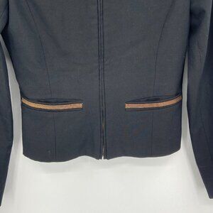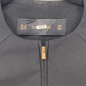 ZARA Basic Black Gold Tone Detail Shoulder Pad Full Zip Blazer Jacket Size XS