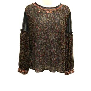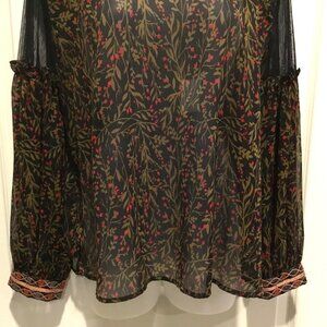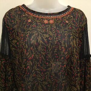 ZARA Basic Boho Floral Embroidered Sheer Blouse Black Olive Red XL – Boho Luxe