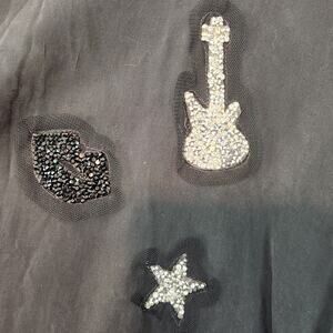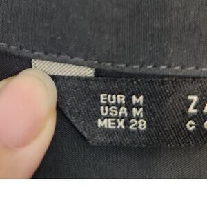 ZARA Basic Collection Black Glitter Rhinestone Beaded Button Down Shirt Women M