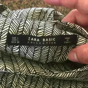 ZARA Basic Collection Black and White Geometric V front short sleeve dress Large