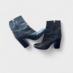 ZARA Basic Collection Premium Leather Black Ankle Boots Block Heel Size 38 7.5