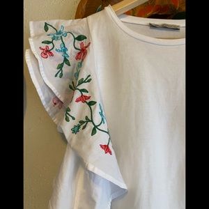 ZARA Basic Collection Embroidered Ruffle Sleeve Top