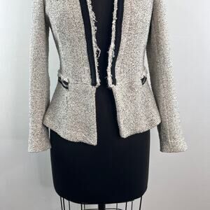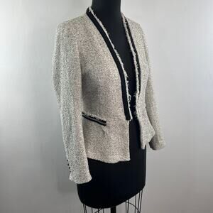 Zara Basic Gray Black Boucle Blazer Cotton Shawl Lapel Single Breasted Sz Small