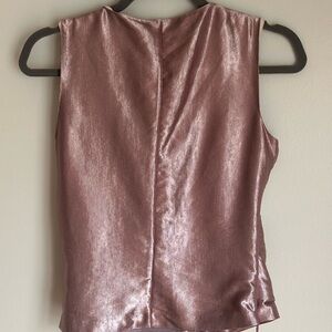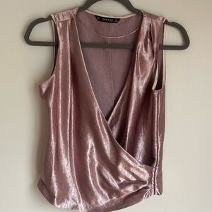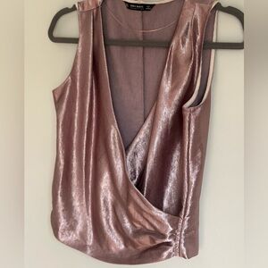 ZARA Basic Metallic Rose Gold Satin Faux Wrap Top Size XS EUC