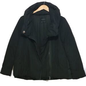 ZARA Basic Outerwear Black Hooded Zip Up Front Puffer Coat Jacket Size L