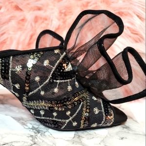 *Black Mesh with sequins and metallic gold/silver embroidery detail