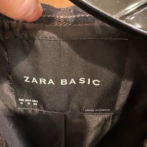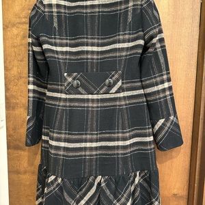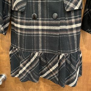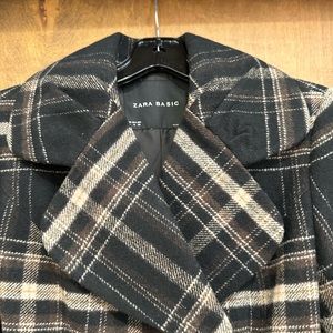 ZARA Basic Size M, Black/Brown/Cream Plaid, Polyester, Acrylic and Wool Coat, with Pockets and Ruffle at Hem. In Like-New Condition.