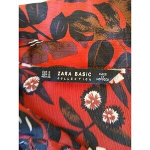 The ZARA Basic Women's Floral Chiffon Long Sleeve Button Up Shirt in size S features a relaxed fit, making it suitable for various occasions such as travel, weddings, parties, and casual wear. The multicolor floral pattern adds a touch of elegance to the lightweight and sheer chiffon fabric, perfect for all seasons. With a collared neckline, long sleeves, and button closure, this shirt offers a basic yet stylish option for women looking for a versatile addition to their wardrobe.
