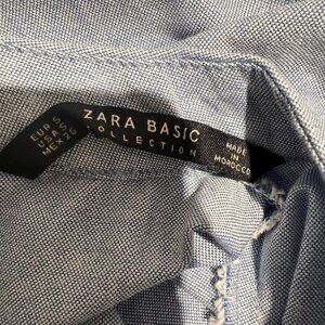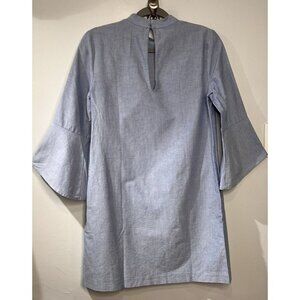 ZARA Basic Womens Shirt Dress Blue Chambray Bell Sleeve Sz S Mini Short Pockets