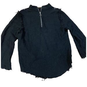 ZARA Black High Neck Long Bell Sleeve with Raw Hems & Top Stud Detail sweater womens size large