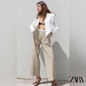 ZARA Basics Oversized Ribbed Off White Open Front Blazer Size Small