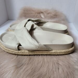 ZARA Beige Leather Slip On Cross Strap Espadrille Sandals Size 8.5