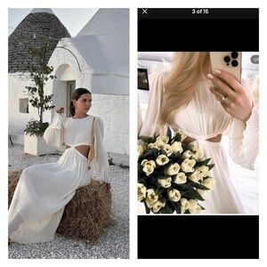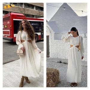 NEW with tags ZARA Ivory Beige Cream Blogger Favorite Long Sleeve Pleated Side Cutout Midi Dress Cult Gaia Dupe Blogger Favorite
