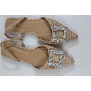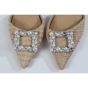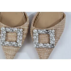 ZARA Beige Raffia Weave Pearl Embellished Slingbacks Sandals Size 40