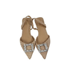ZARA Beige Raffia Weave Pearl Embellished Slingbacks Sandals