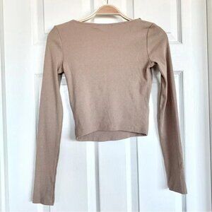ZARA Beige Tan Ribbed Square Neck Long Sleeve Top